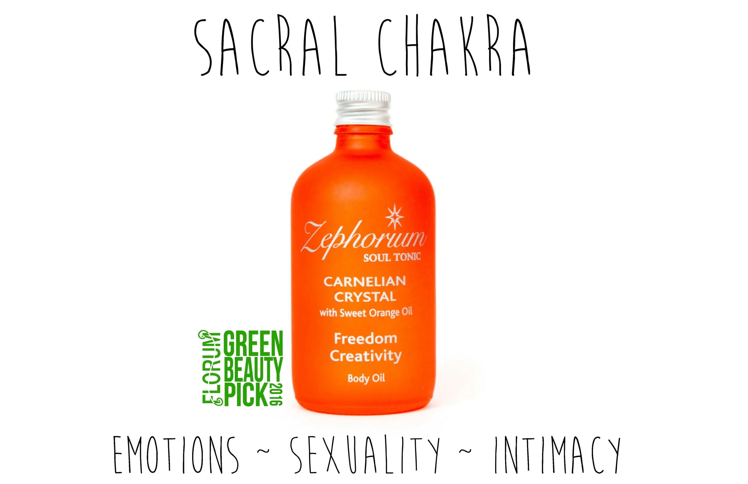 The Carnelian Crystal Zephorium Body Oil is high quality blend of Sweet Orange and Palmarosa oils, though potentised, the Carnelian Crystal helps culminate the freedom and creativity in this aura spray to help rebalance the Sacral Chakra. The 2nd Chakra, unlike the Root Chakra that is about security and survival, the Sacral Chakra seeks desire, pleasure, and enjoyment. The Sacral Chakra when balanced gives you the enjoyment of experiencing things through you senses and emotions.The Orange oil is so uplifting and cheery, that it is often known as the ‘Smiley Oil’. This oil leaves you feeling warm and refreshed while helping to restore the inner glow by opening your passion and pleasure pathway to stay present in the moment, by encouraging creativity, vitality, and sexuality. All of Zephorium's product are blended from the highest quality essential oils that are sourced ethically, they are also 100% Natural and Vegan.